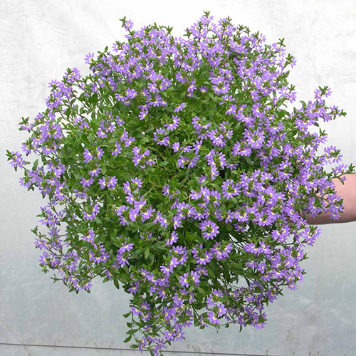 Scaevola have been popularised all around the world due to their quick flowering ability, unusual fan form and versatility as a ground cover or containerised plant. Aussie Crawl is a beautiful, free-flowering Scaevola bred by NuFlora International.