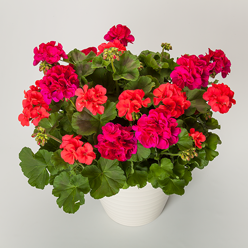 The BIG Series of Pelargoniums will bring big impact to your garden. Give your garden a cottage feel by using baskets to hang them from lattice, retaining walls, fences or pergolas. Plant them by your kitchen window to brighten up the view or use a variety of decorative pots to add depth and colour to any outdoor setting in need of brightening up. The thick, mid-green foliage keeps a semi-trailing habit which means they will cascade in hanging baskets, or stay low-growing in the garden.