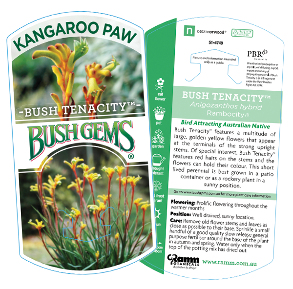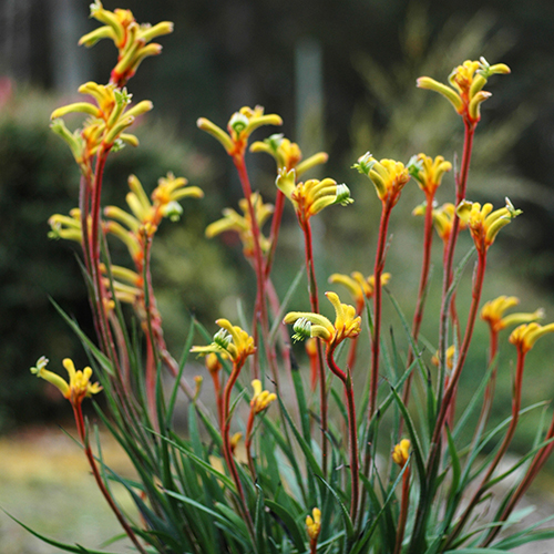 Bush Tenacity features large golden yellow flowers on strong, upright, red haired stems. The flowers of this kangaroo paw hold their colour for longer, resulting in a very impressive non-branching variety.