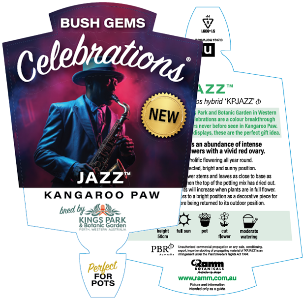 Celebrations Jazz™ is a kangaroo paw that showcases intense deep purple flowers with vivid red highlights – a stunning and unique colour combination Bred by the team at Kings Park & Botanic Garden in Western Australia.