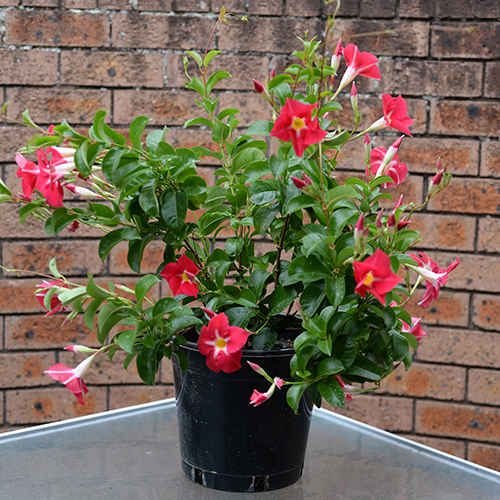 An Australian bred variety designed to withstand the harsh Australian climate. Mandevillas are known for their vigorous growth and climbing habit.