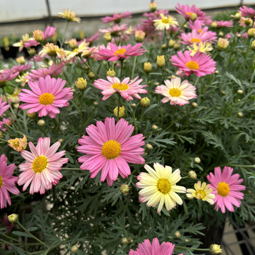 Summit Pink is an absolute delight with its masses of beautifully formed, single mid-pink flowers with a yellow centre highlight. From Autumn to Spring each plant continually produces flowers that sit above the foliage. A gorgeous sight in pots and gardens.