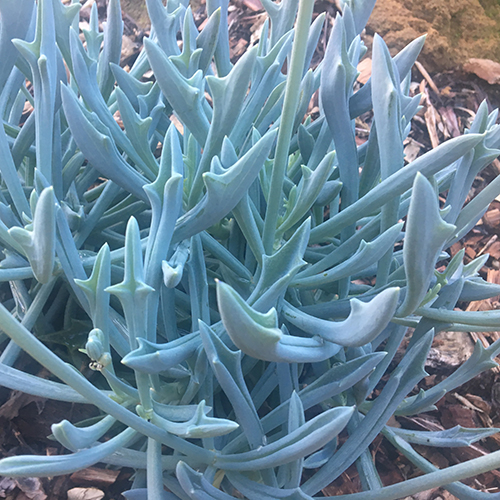 Trident Blue is an easy-care ground cover with powdery blue-grey leaves that display an intriguing shape. Bred by Attila Kapitany, Trident Blue is easy to grow, has low water needs and low maintenance requirements.